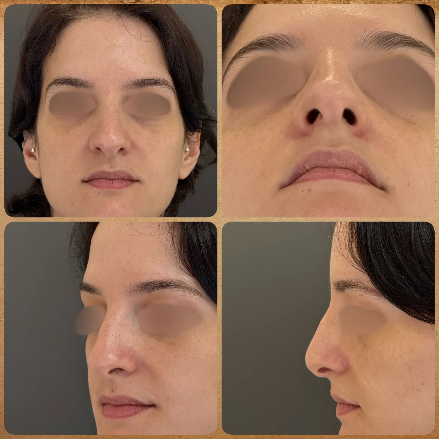 Esses achados reforçaram a indicação de uma rinoplastia preservadora funcional e estética, com o objetivo de harmonizar a forma nasal e restaurar a função respiratória.